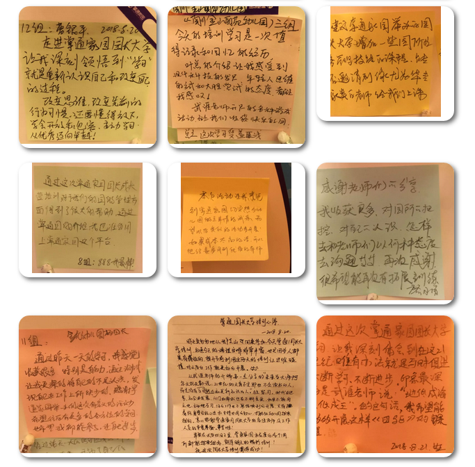 成长营现场的分享墙中,园长们纷纷写下成长感悟;